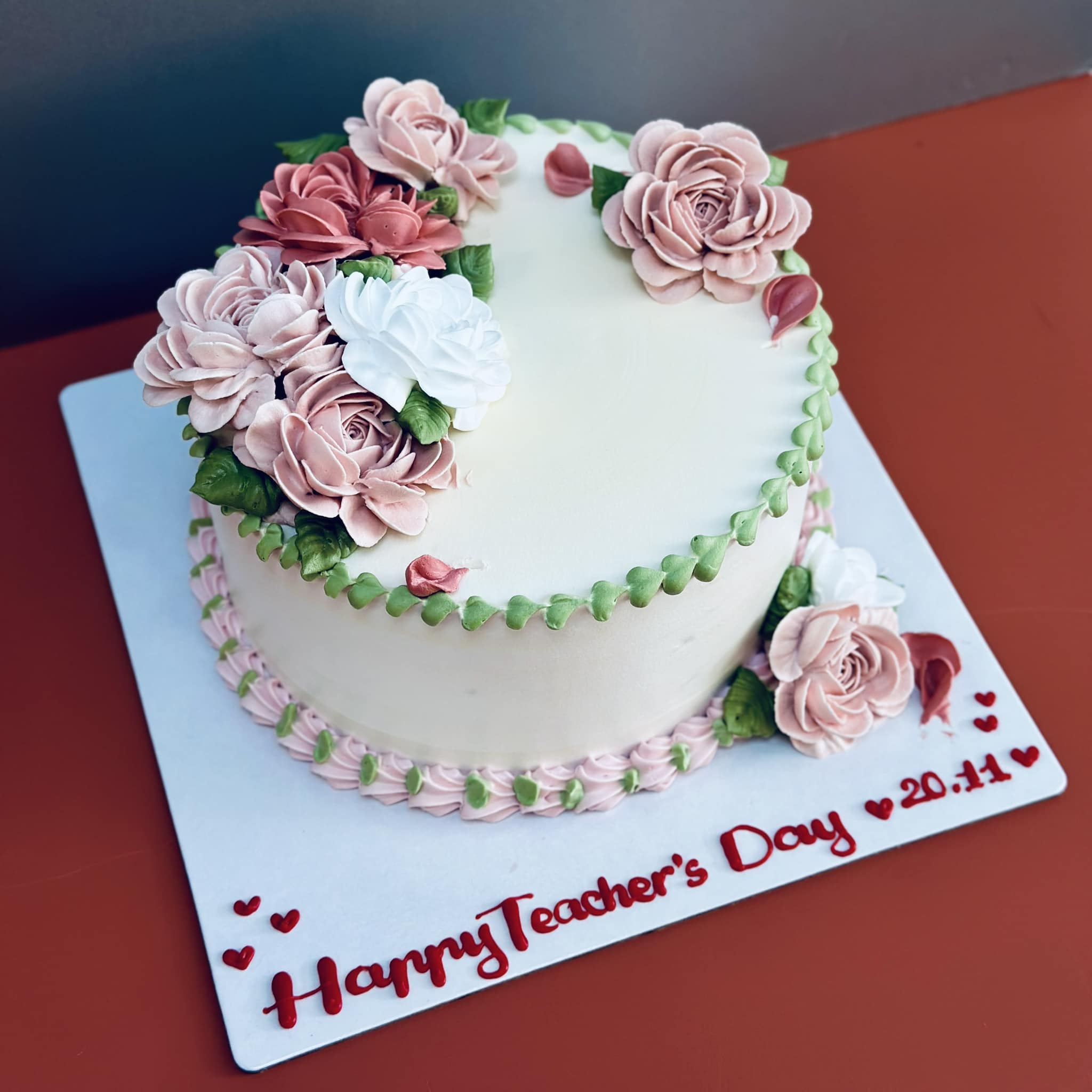 Bánh kem hoa tươi, bánh kem vẽ hình, hoặc bánh kem chữ nghệ thuật – phù hợp cho học sinh, phụ huynh hoặc nhà trường đặt tặng.
