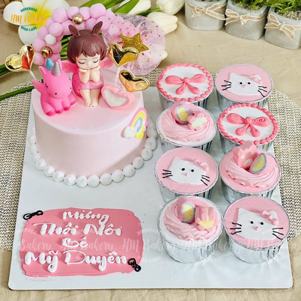 - Bánh 12cm đường kính kèm 8 cup giấy bạc như mẫu